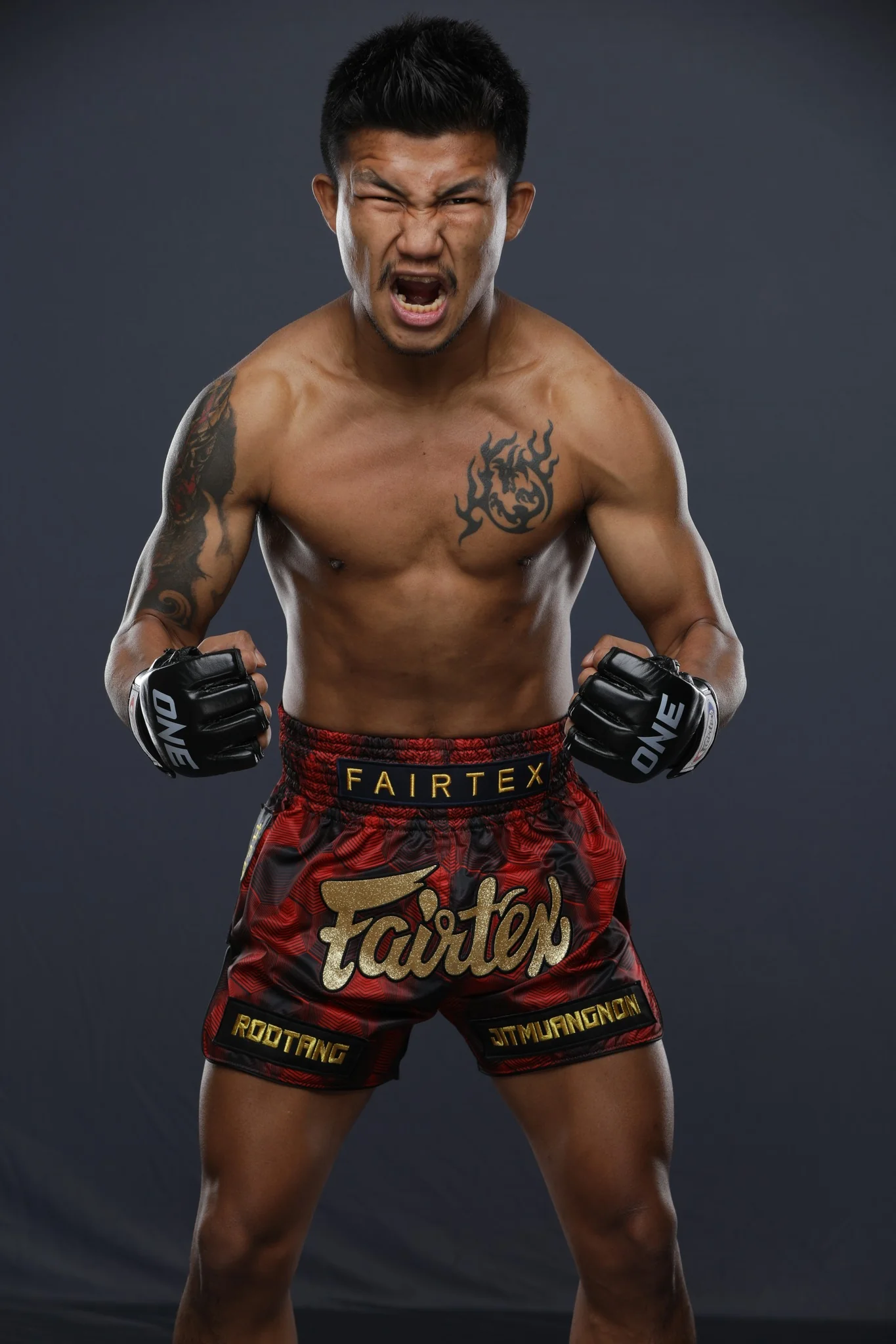 Entrena y compite con los pantalones de Muay Thai Fairtex inspirados en Rodtang Jitmuangnon, campeón mundial de ONE Championship y uno de los peleadores más temidos del Muay Thai moderno. Estos shorts Fairtex representan la esencia del estilo tailandés: potencia, resistencia y agresividad dentro del ring.